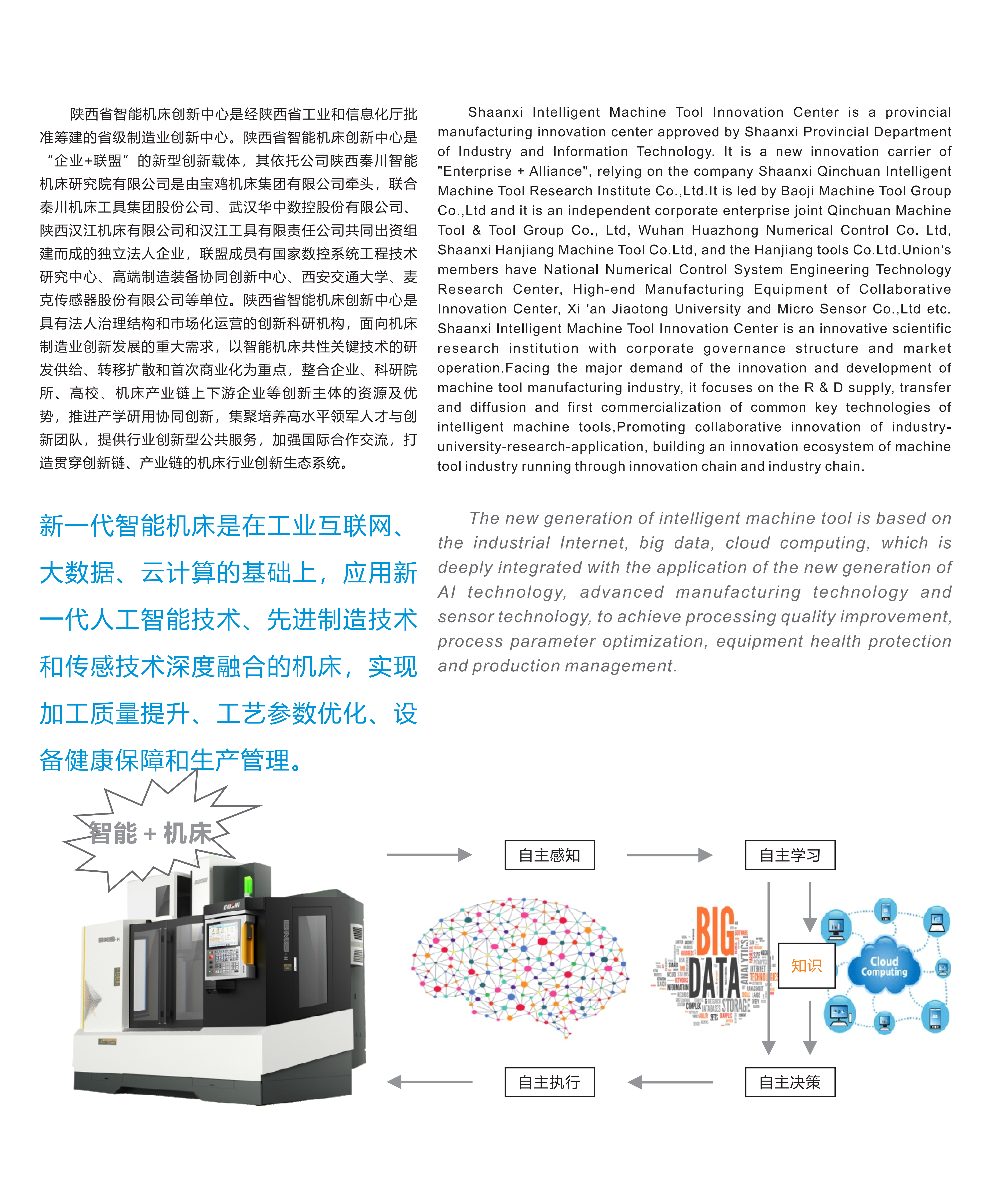 新一代智能機(jī)床是在工業(yè)互聯(lián)網(wǎng)、大數(shù)據(jù)、云計(jì)算的基礎(chǔ)上,應(yīng)用新一代人工智能技術(shù)、先進(jìn)制造技術(shù)和傳感技術(shù)深度融合的機(jī)床,實(shí)現(xiàn)加工質(zhì)量提升、工藝參數(shù)優(yōu)化、設(shè)備健康保障和生產(chǎn)管理。